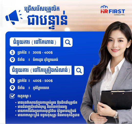 🔥ដំណឹងជ្រើសរើសបុគ្គលិកបន្ទាន់!🔥(ប្រាក់ខែ $300 - $500)