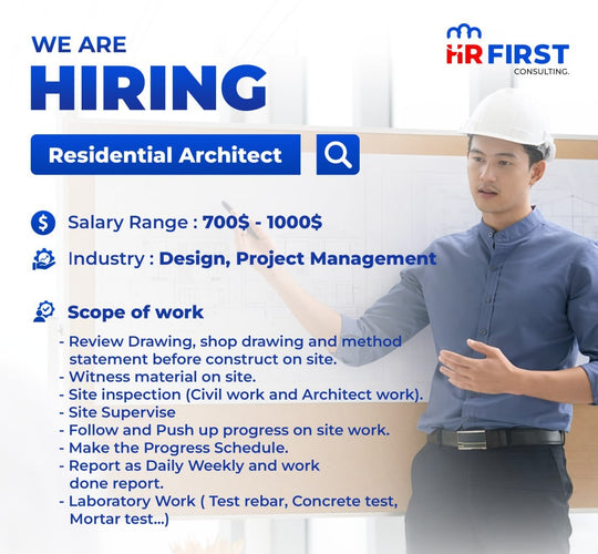 ជ្រើសរើសស្ថាបត្យករ៖ Residential Architect (Design & Project Management) | ប្រាក់ខែ $700 - $1,000